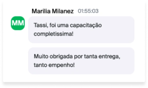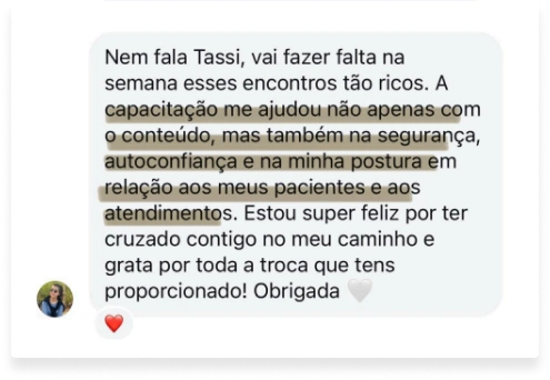 A Tassi estará presente no grupo de WhatsApp, nas supervisões em grupo e nas suas sessões individualizadas & personalizadas.